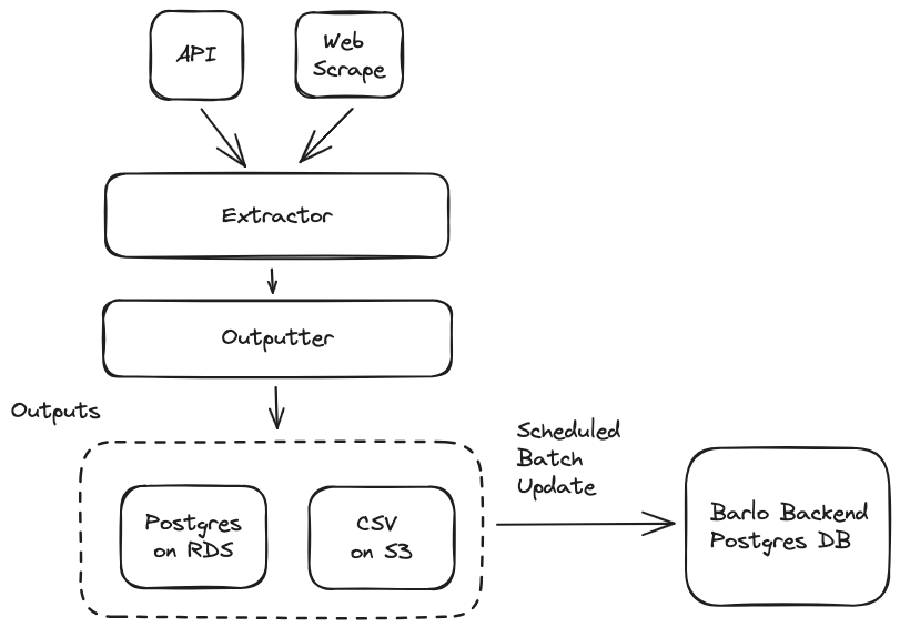 The code for web scraping, and extracting data from APIs is all executed via AWS lambda. Lambda allows us to extract and write data in an entirely serverless manner, avoiding the need to manage any infrastructure ourselves, all whilst keeping costs pretty low.